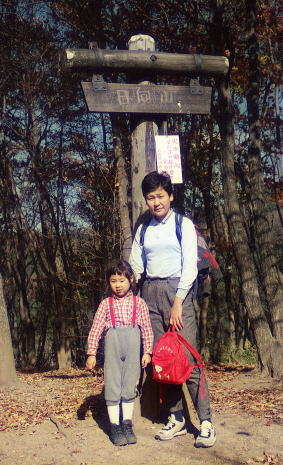 | (写真G)日向山の山頂で | (写真F)山頂から下る | (写真H)紅葉をバックに |