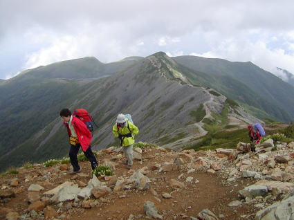 | (写真C)小蓮華山を目指し稜線歩き | ||