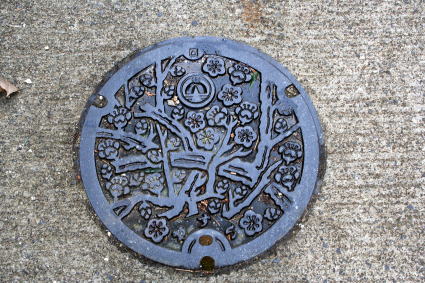 | (写真)マンホールも梅模様 |