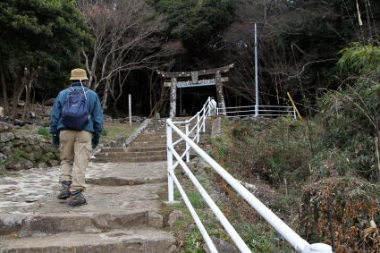 車道を登り「長崎金星観測碑」の案内標識を入ると、すぐに道は狭くなる。