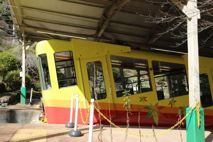 ケーブル駅の脇を通ったらケーブルカーが停まってました。ん! 急傾斜の為か、横から見たら前傾してるんですね。