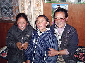 | ロッジはお母さん+娘二人。 父さんは出稼ぎ中かな? ここクムジュンはシェルパの聖地。 むう母さんは得意の折り紙(ツル)を 一生懸命教えている。 ここの娘さんは覚えが早い。 |
